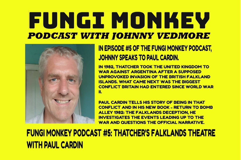 In Episode #5 of the Fungi Monkey Podcast Johnny speaks to Paul Cardin about his new book Return to Bomb Alley 1952 – The Falklands Deception and they discuss the real reasons behind the Falklands War.